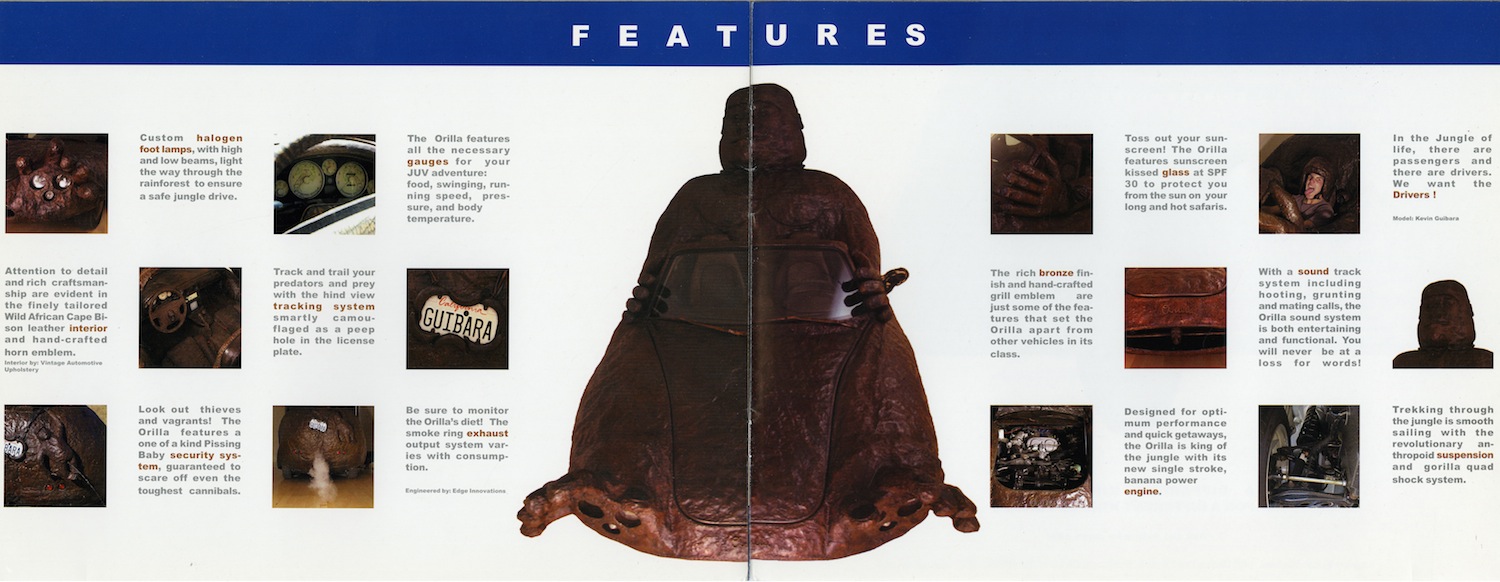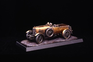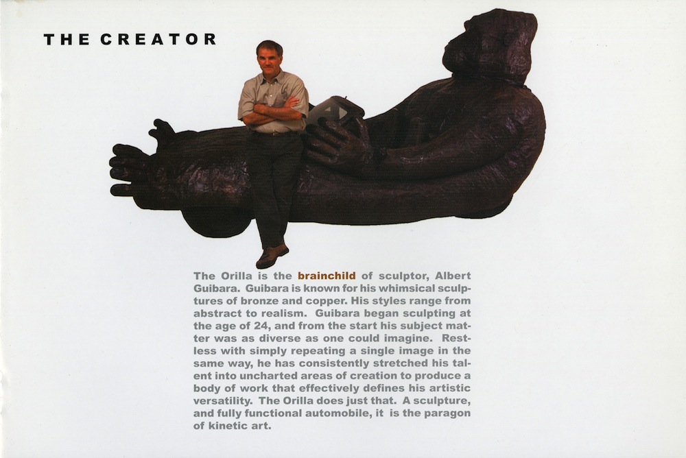 Combining his passion of art and antique cars, Guibara created a collection of limited edition bronze automobiles. Guibara pays tribute to the 1938 Bugatti Type 57SC Atlantic and 1928 4.5 Litre Blower Bentley. His passion for cars also comes in the form of his bronze sculpture/automobile hybrid - Orilla and the Hippomobile. Check out the Orilla's test drive here.